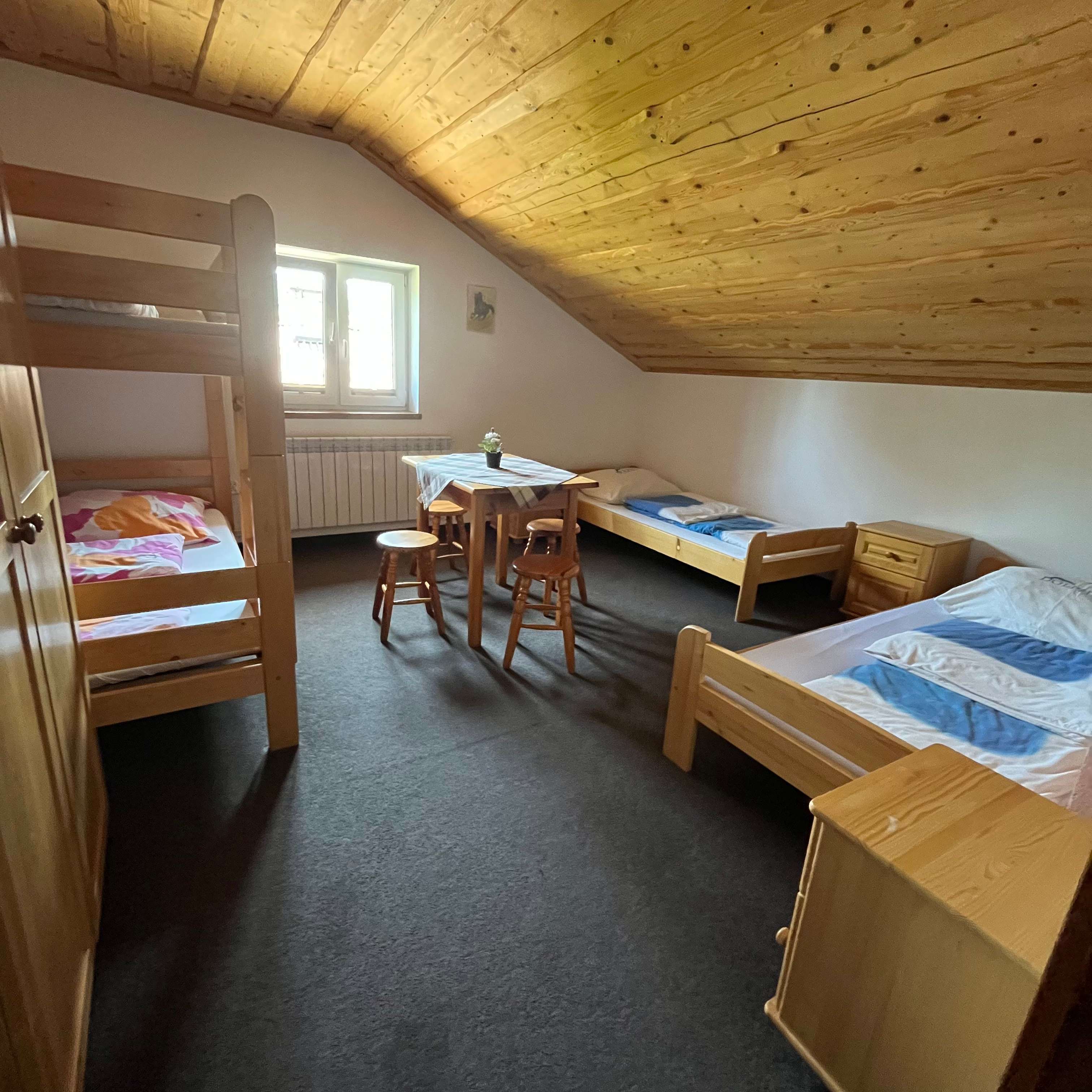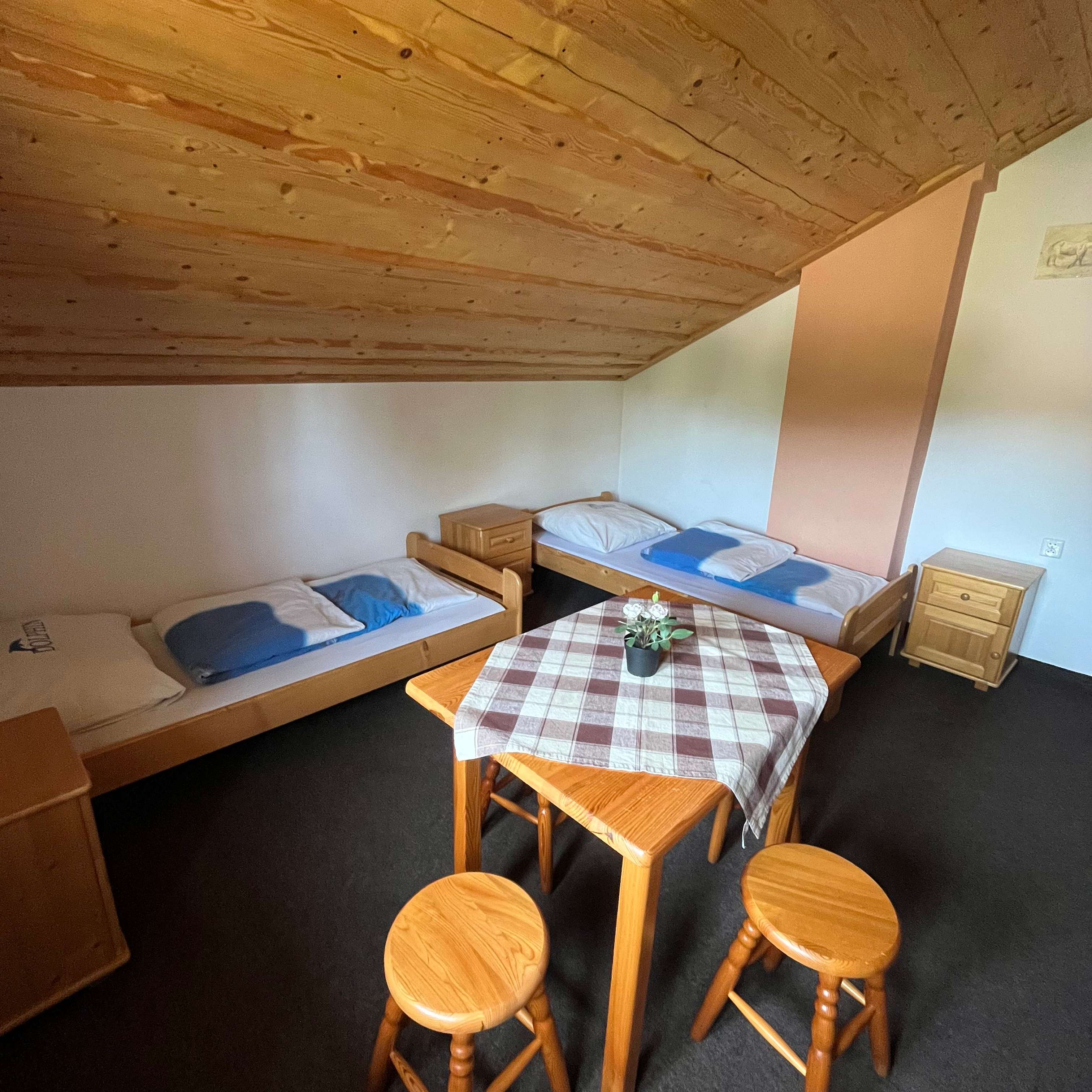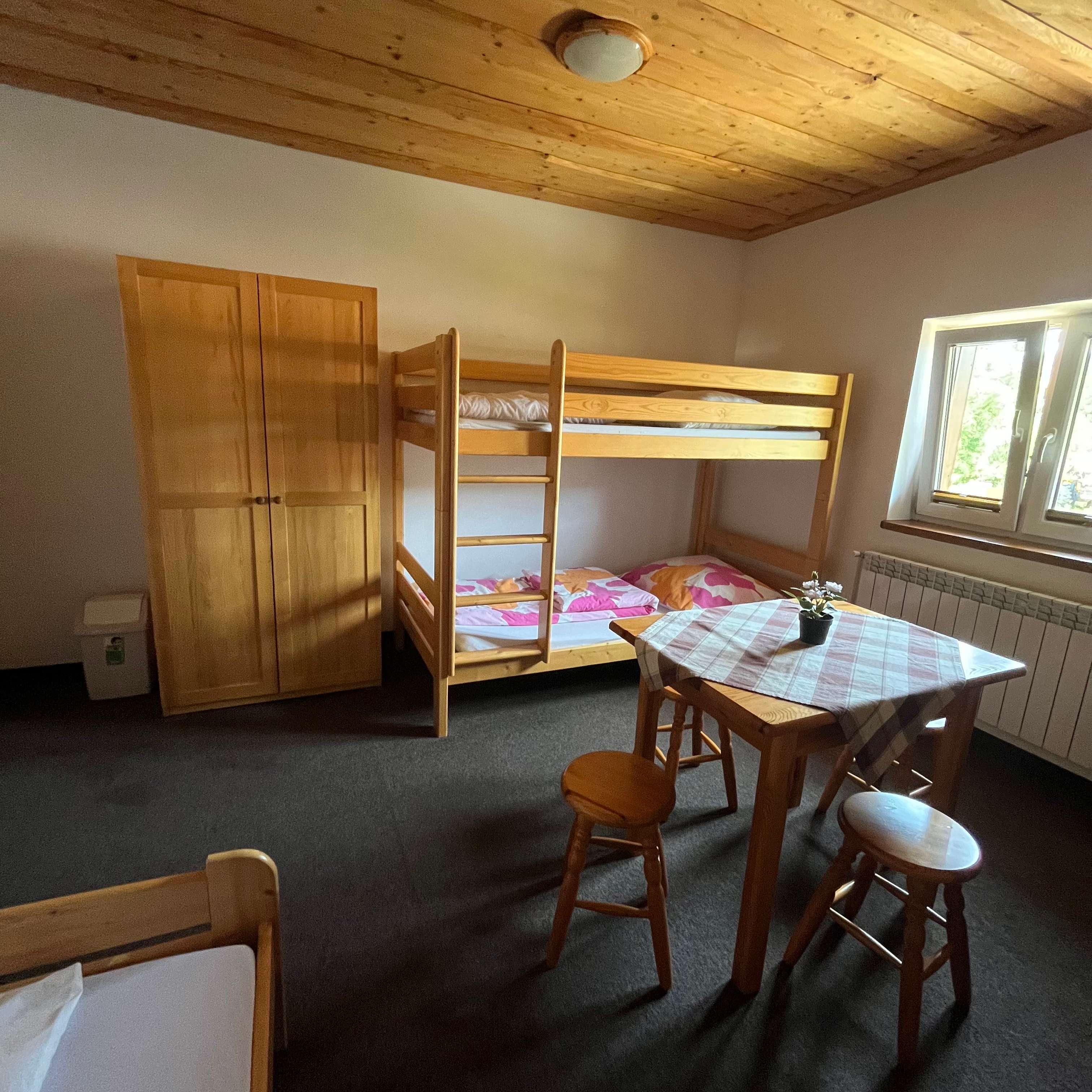 Łóżka: 1 łóżko piętrowe oraz 2 łóżka pojedyncze dostosowane do potrzeb naszych gości, z wygodnymi materacami i świeżą pościelą.